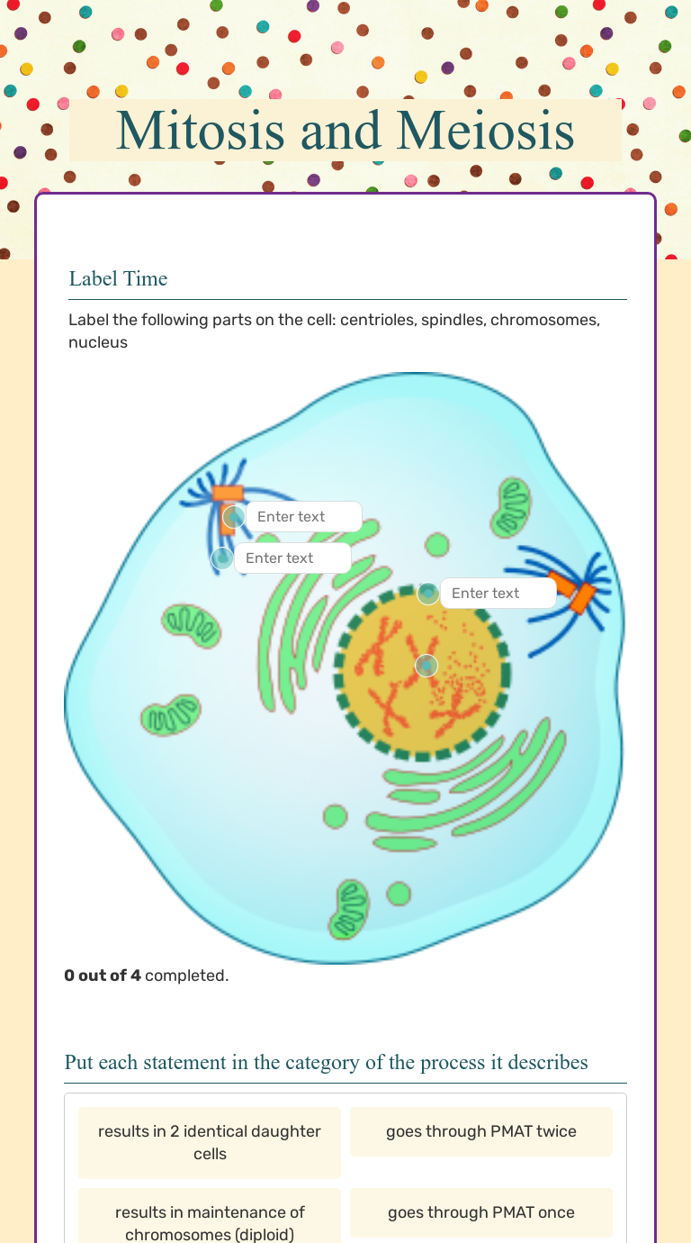 Mitosis Meiosis Cell Cycle Test Review By Liz Miller Tpt from ecdn.teacherspayteachers.com Then, students will conduct a simple experiment to extract their own dna. Label the following diagram of mitosis of an animal cell. Cell division reading comprehension worksheet mitosis and meiosis science answer key : Cell division reading comprehension worksheet mitosis and meiosis science answer key / pin on cell division: Worksheets and lesson ideas to challenge students aged 11 to 16 to think hard about mitosis and meiosis (gcse and key stage 3). Each individual listing has more information and previews. List the four phases in the mitosis process. The process of cell division by meiosis to produce haploid gamete cells.